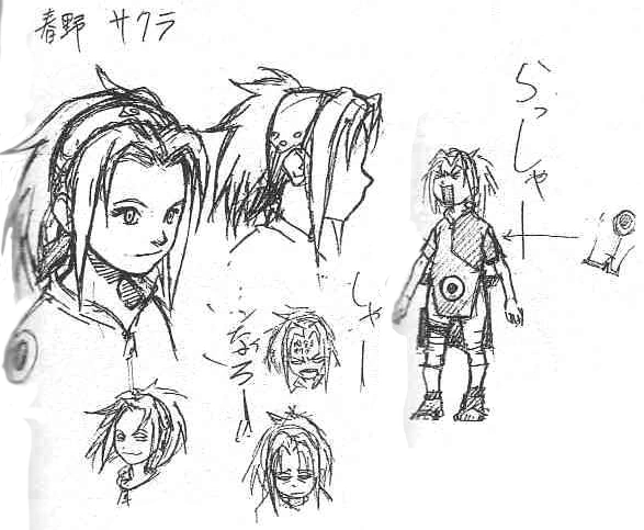 Another characteristic of Sakura is the width of her forehead. Because of this element, Kishimoto takes a long time to draw her, both in the manga and in the promotional and artbook drawings. Kishimoto said that Sakura's pink hair was originally intended to give her a unique style and make her look like cherry blossoms.
