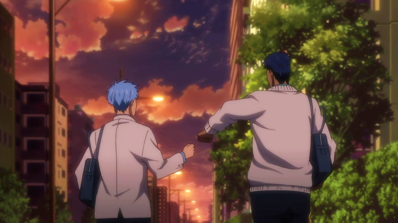 After that, Kuroko and Kagami go for a jog on the beach. Kagami tells Kuroko the reason why he thinks he lost against Midorima is because he can only shoot dunks. Kuroko remembers the advice that Hyūga and Midorima gave him , and suddenly he stops . He then tells Kagami that he may be able to beat the Miracle generation in a battle , but he can't beat them on the court . He then tells Kagami that he has found a way to do more than that. Meanwhile, Takao questions Midorima and asks him why they helped them, saying that in this way, they will be stronger. Midorima replied that this would play in their favor.