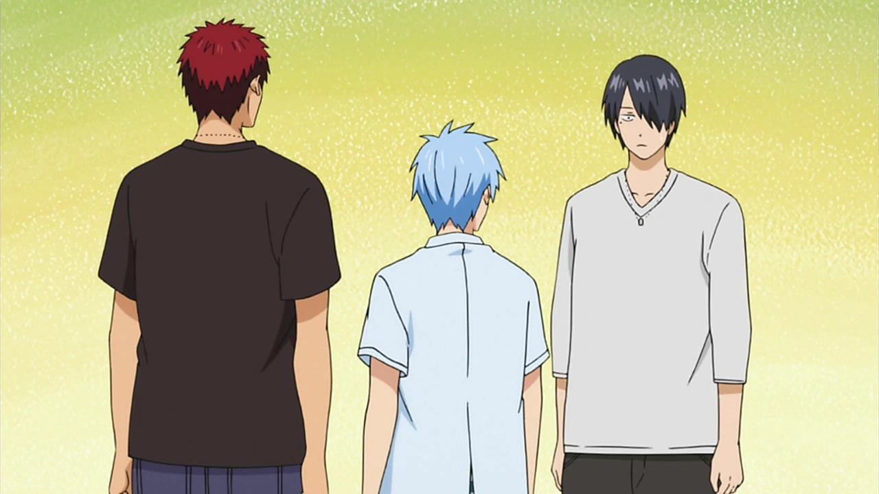 When Kuroko goes to tell Aomine that he wanted to leave the basketball team, Aomine motivates him to stay, saying that he admires Kuroko's love for basketball. The players of the first team then enter: Akashi Seijuro, Shintaro Midorima and Atsushi Murasakibara (Ryota Kise was not yet part of the team). While Murasakibara did not pay much attention to Kuroko, Akashi noticed his lack of presence and said that Kuroko might be hiding a completely different ability from them. Kuroko finally got a chance to play in a game. It was then that he discovered and developed his misdirection.